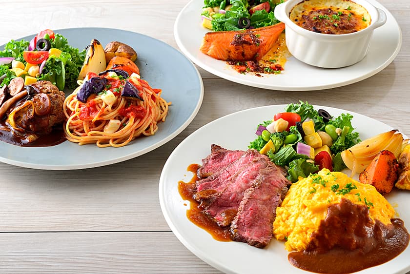 目の前で半熟卵があふれ出す「とろとろオムライス」、明太子パスタをふわっふわの生クリームで包んだ「濃厚明太子クリームパスタ」、熱々でグツグツなとろ~りチーズがたまらない「フロマージュハンバーグ」など、見て楽しい食べて美味しいメニューの提供にお客様に食事を楽しんでいただけるよう心がけております