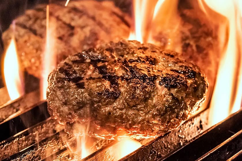 特注炭焼グリルの大火力で旨みを閉じ込め一気に焼き上げます!余分な脂を落とし旨味を凝縮する風味豊かなハンバーグやステーキは、頬が落ちる美味しさです。 炭の香りとともにご堪能ください。