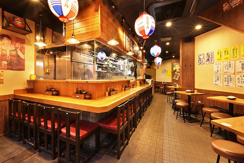 店内は、なんだか「ホッ」とする空間を演出し、あたたかな時間が流れる雰囲気づくりを大切にしております。モウモウと煙が立ち込める香ばしい匂いに誘われて一歩店内に入ると、どこか郷愁を感じさせる昭和モダンな空間。親しい仲間たちとの語らい、仕事帰りのちょい呑みなど、ふらりと立ち寄って「明日への活力と元気」を養える様な地域に密着したお店を目指します。