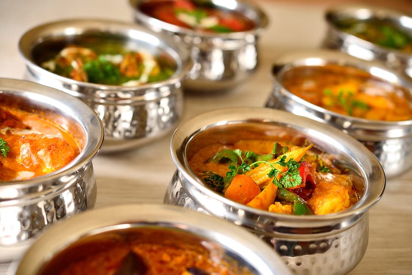 厳選したスパイスを石臼で挽いた自家製ガラムマサラ(インドのミックススパイス)とたっぷり野菜をベースにしたインドカリー!!本格インドカレーをお楽しみいただけます♪フレッシュなスパイスの香りがお口いっぱいに広がります。 350度のタンドール竃で焼き上げるタンドリー料理や窯焼ナンも絶品!
