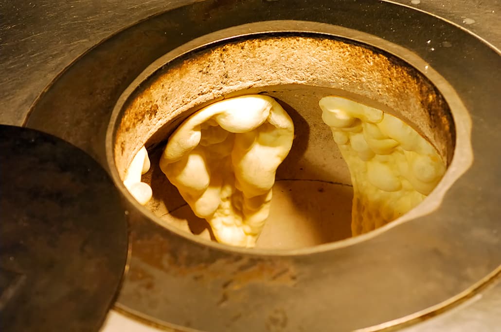 350度のタンドール竈で「外はふっくら香ばしく♪中はモチモチ♪」に焼き上げます。