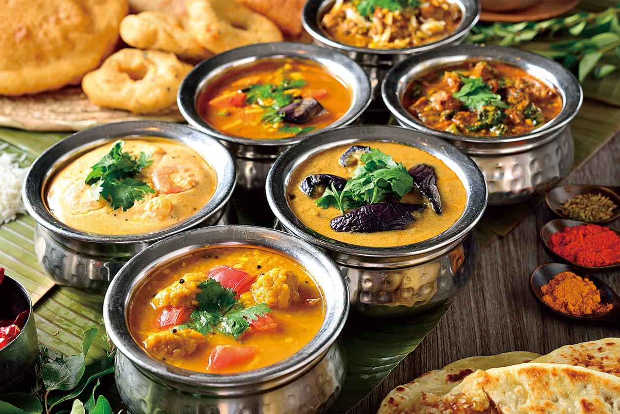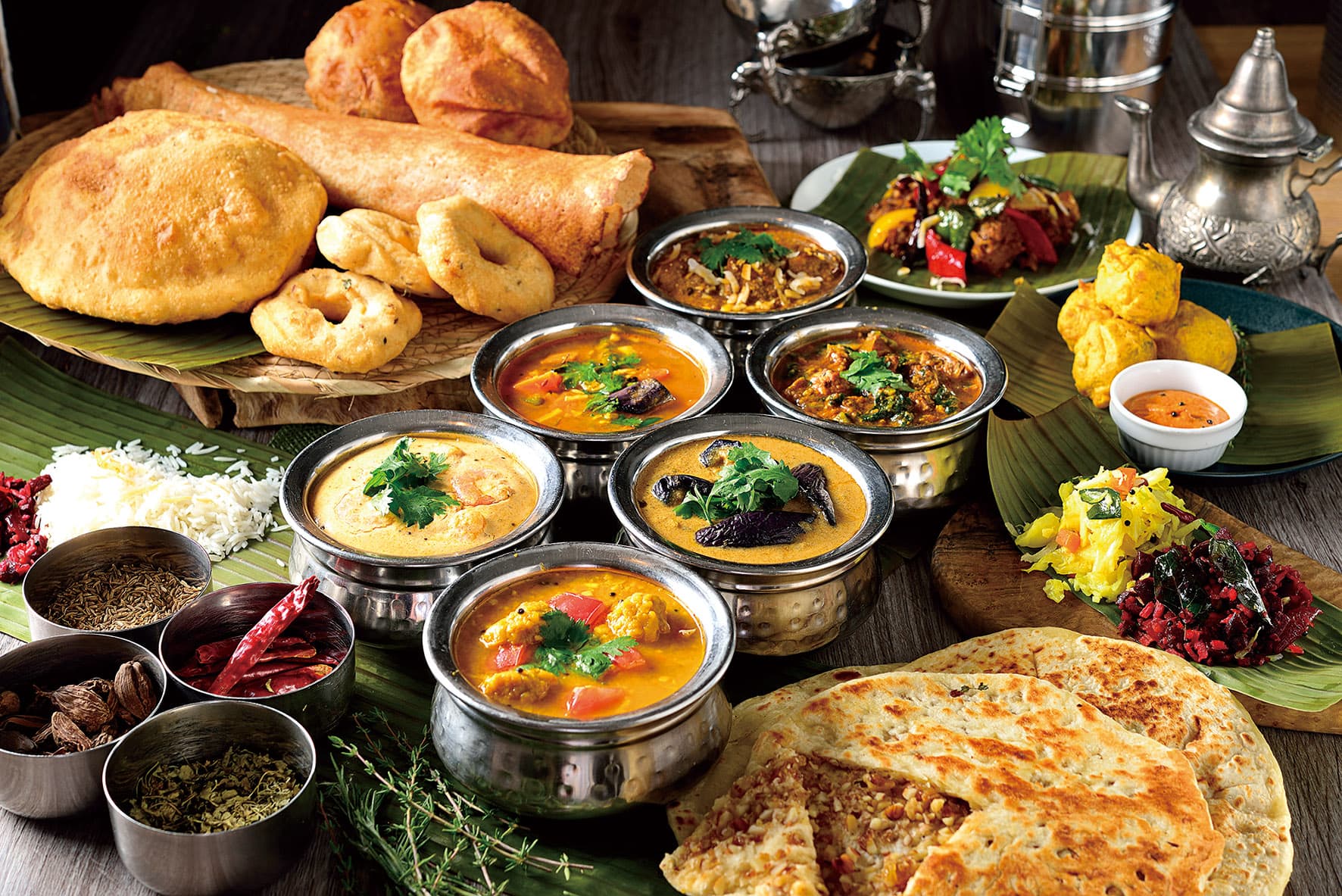 サラッとスパイシーな南インドカリーに加えてドーサやワダなど南インド名物のパンなどもお楽しみ頂けます。