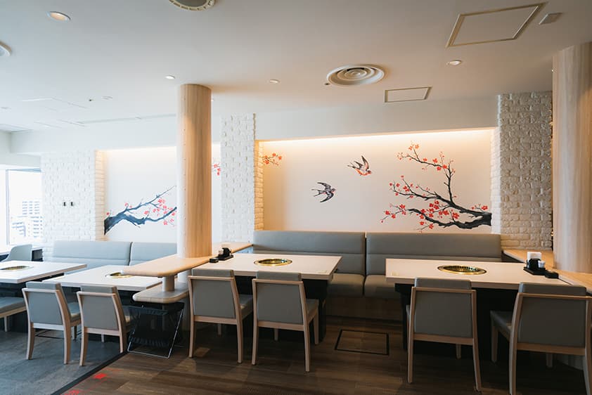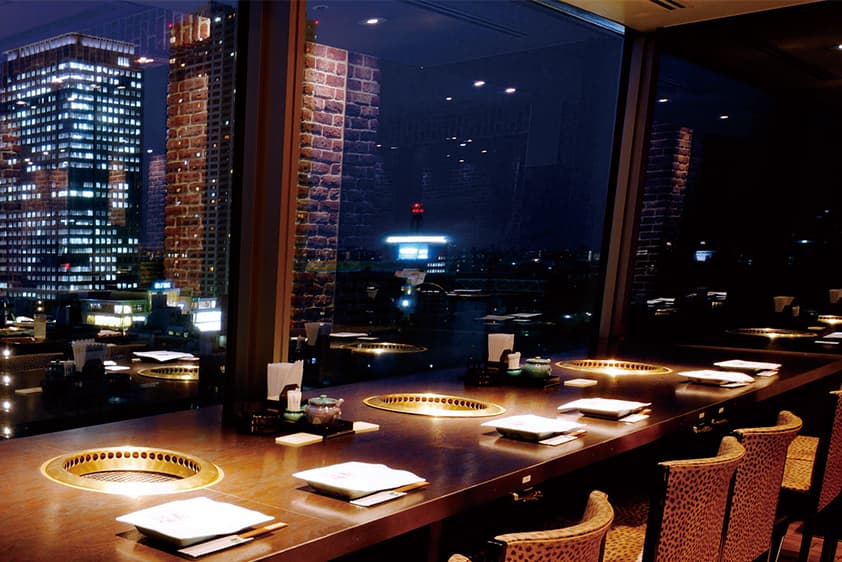 窓際のカウンター席はカップルやご夫婦にぴったりの2人がけシート。スカイツリーを正面に眺望出来る絶好のロケーションです。